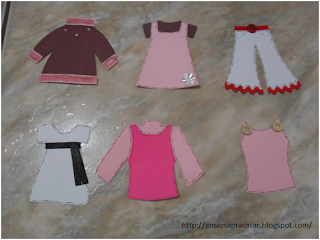 Hj ainda em clima de varal de recados vou deixar por aqui uns moldes de roupinhas pra quem quiser copiar. Fica uma graça fazer em papel colorido e vale incrementar com uma rendinha, um botãozinho, uma fitinha... Então vamos procurar pela casa todo restinho de costura que ta sobrando e incrementar nossas roupinhas!!!!