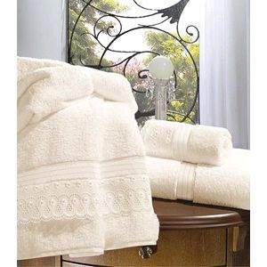 O jogo é composto por 5 peças, com 1 toalha de banho e 1 de rosto com aplicação de bordado ingles e 1 toalha de balho, de rosto e um tapete sem a aplicação, Felpa fibra longa, 100% algodão egípcio.