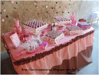 Bom andando pela net a gente vê cada coisa linda e criativa e acabamos copiando esses detalhes, e alguns detalhes que copie para o meu chá foram:
