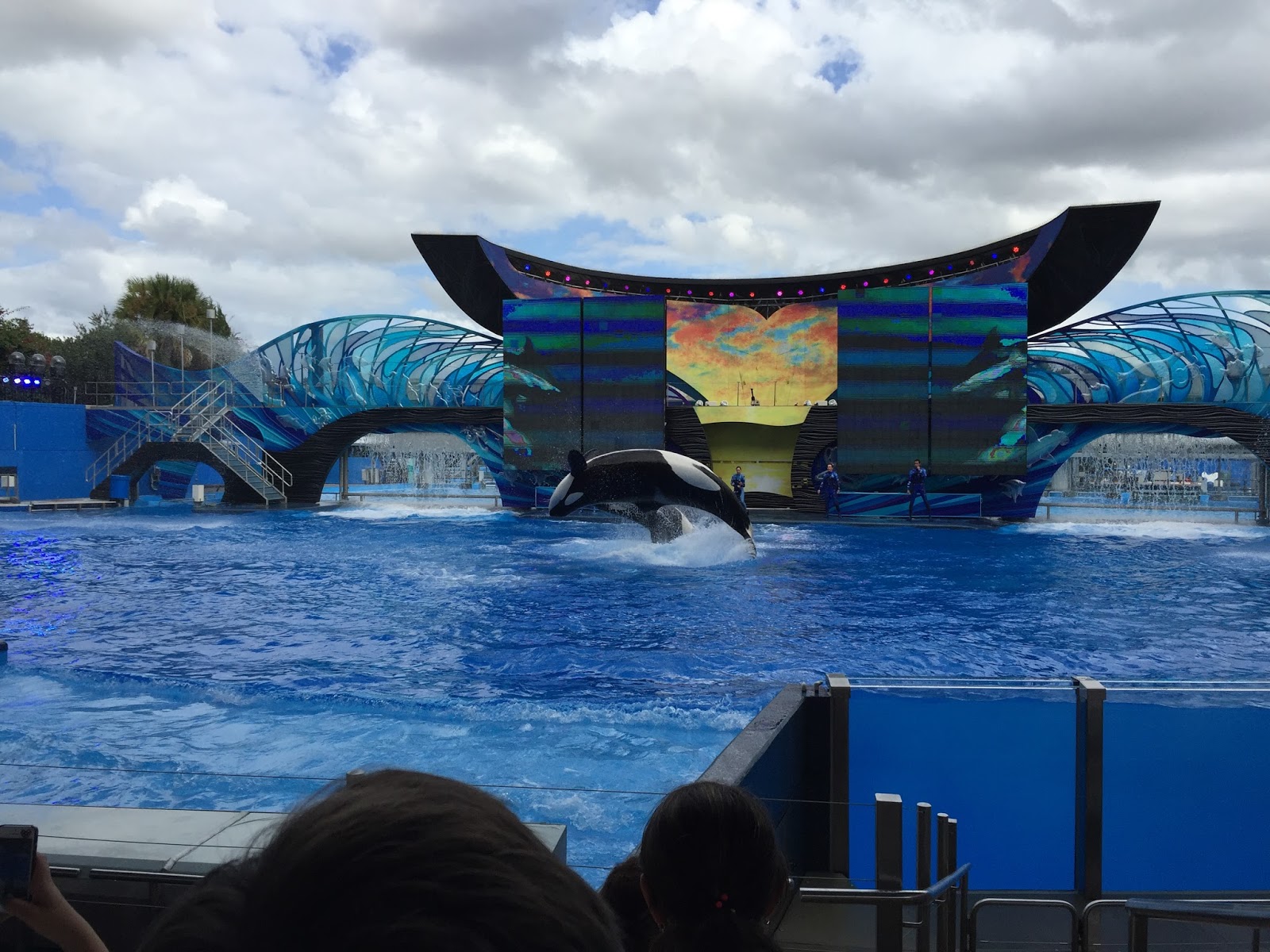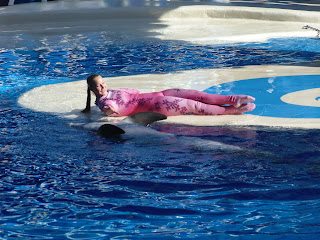 Vimos dois shows com animais. O primeiro que fomos ver foi o Blue Horizons um show com golfinhos, gente não me canso de dizer como é lindo e confesso chorei logo de cara rs