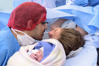 Ouvi o choro da Bia e de repente lá estava ela nas mãos do médico, linda!
