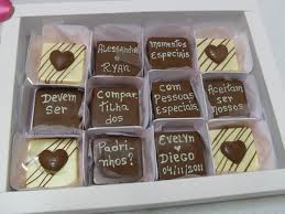 Esses aqui são chocolates com a inscrição no próprio chocolate, olha só: